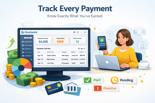 No more digging through bank alerts or text messages to confirm who paid you. With FinaCentric, every payment from your clients or customers can be recorded and organized in one simple system.